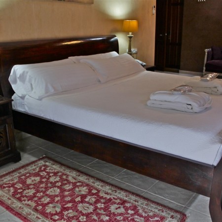Recorrer el Capricho de la Portuguesa es hacerlo por una paleta de colores que varían según la estancia. Y a esa variedad cromática hay que sumarle el de las coloridas obras de arte. También es viajar por 7 suites con personalidad propia. Todas diferentes. Desde un homenaje al caudillo musulmán Al Azraq que campó por estas tierras en el siglo XIII a una habitación de lo más kitsch. Y todas tienen su público. Casi el 95% de las reservas que reciben demandan alguna habitación en concreto.