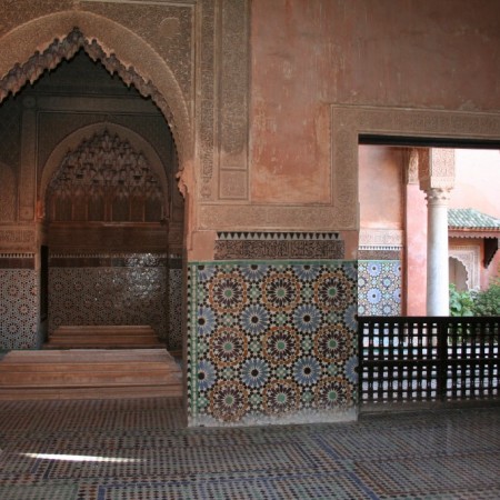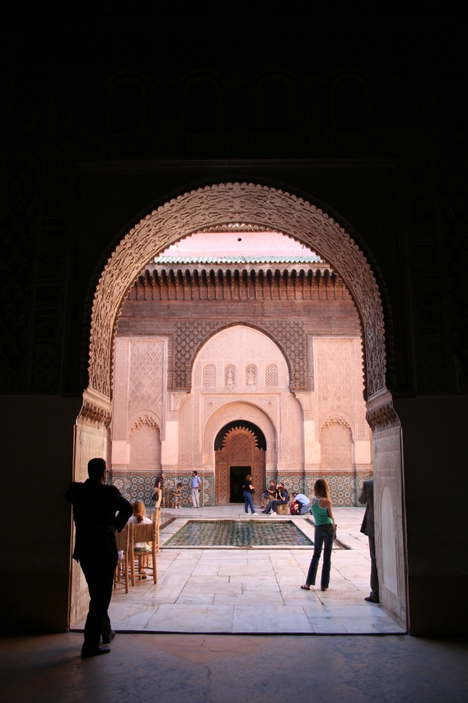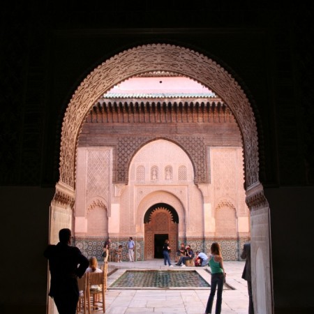 Apuramos el día al norte de la plaza de Yamaa el Fna. La escuela coránica de Ben Youseef (Kaat Benahid) es la más grande de Marruecos y la construyeron en el siglo XV para alojar a los estudiantes de la mezquita con el mismo nombre. Tiene varios patios donde se respira una paz envidiable en contraste con el ajetreo de las calles de la Medina. Hay numerosas inscripciones en estuco y relucientes azulejos. Puede que sea la atracción turística más recomendable de Marrakech.