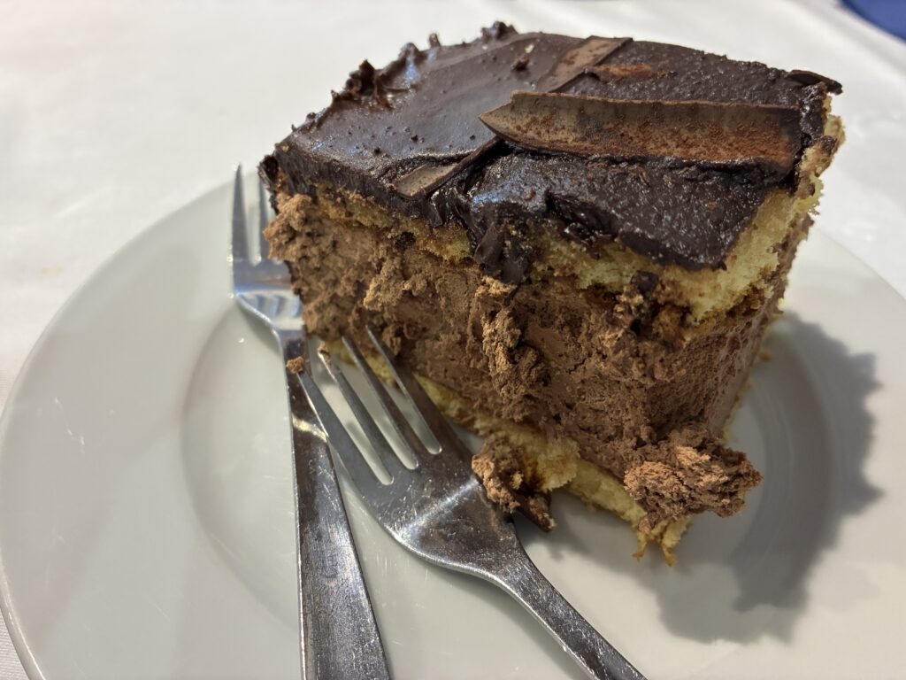 Y si queda sitio para el postre —porque aquí las raciones son tan generosas como la amabilidad gallega—, la tarta de chocolate es la guinda perfecta. Cremosa, intensa y casera, aporta un final dulce y reconfortante a una experiencia gastronómica que ya de por sí se mueve en el terreno del recuerdo.