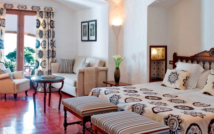 Las habitaciones y suites combinan elegancia y confort, decoradas con un estilo sobrio y mediterráneo que rinde homenaje a la tradición local. Muchas ofrecen vistas panorámicas al mar o a los jardines, permitiendo despertar cada mañana con la magia del paisaje costero.