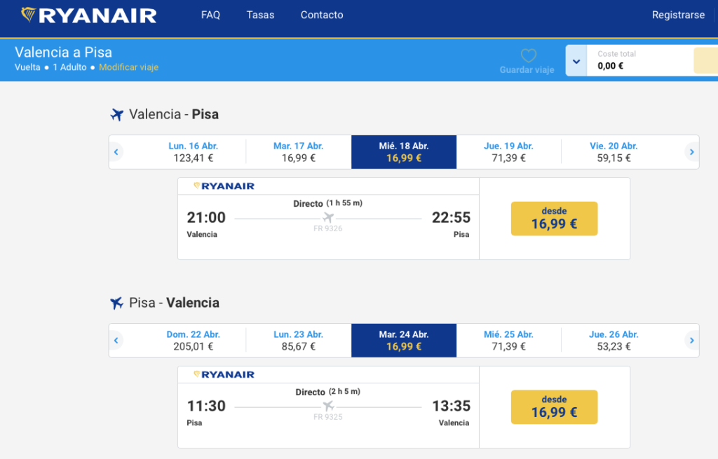 PORTADA | ¿Quieres ir a la Toscana por poco más de 30€ I/V? Pues date prisa que esta oferta se acaba rápido. Por solo 36€ hemos encontrado este vuelo desde Valencia a Pisa a mitad de abril.